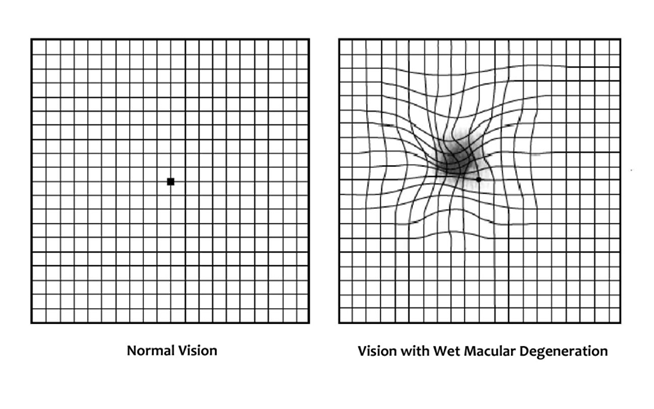 If you notice any new or worsening distortions, blurring, or missing areas, contact your ophthalmologist immediately. These changes may indicate the development or progression of wet macular degeneration, which requires prompt treatment to preserve vision.